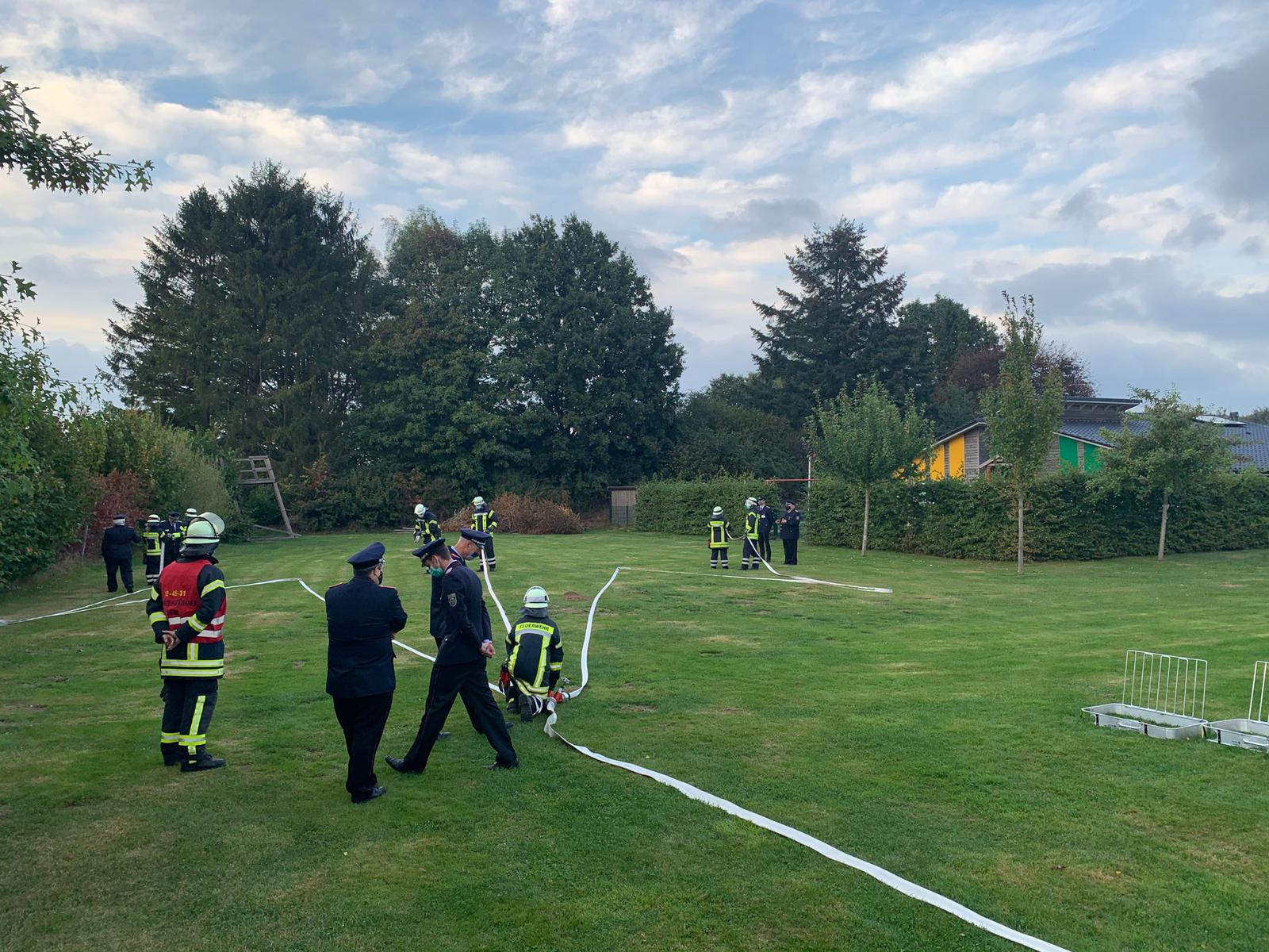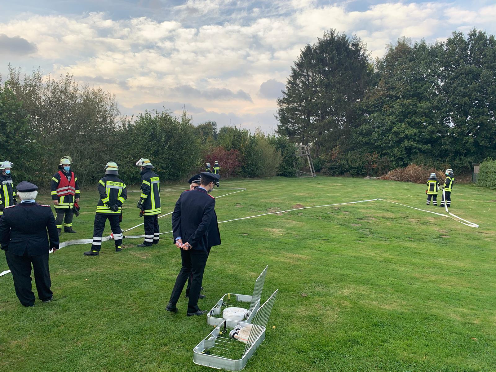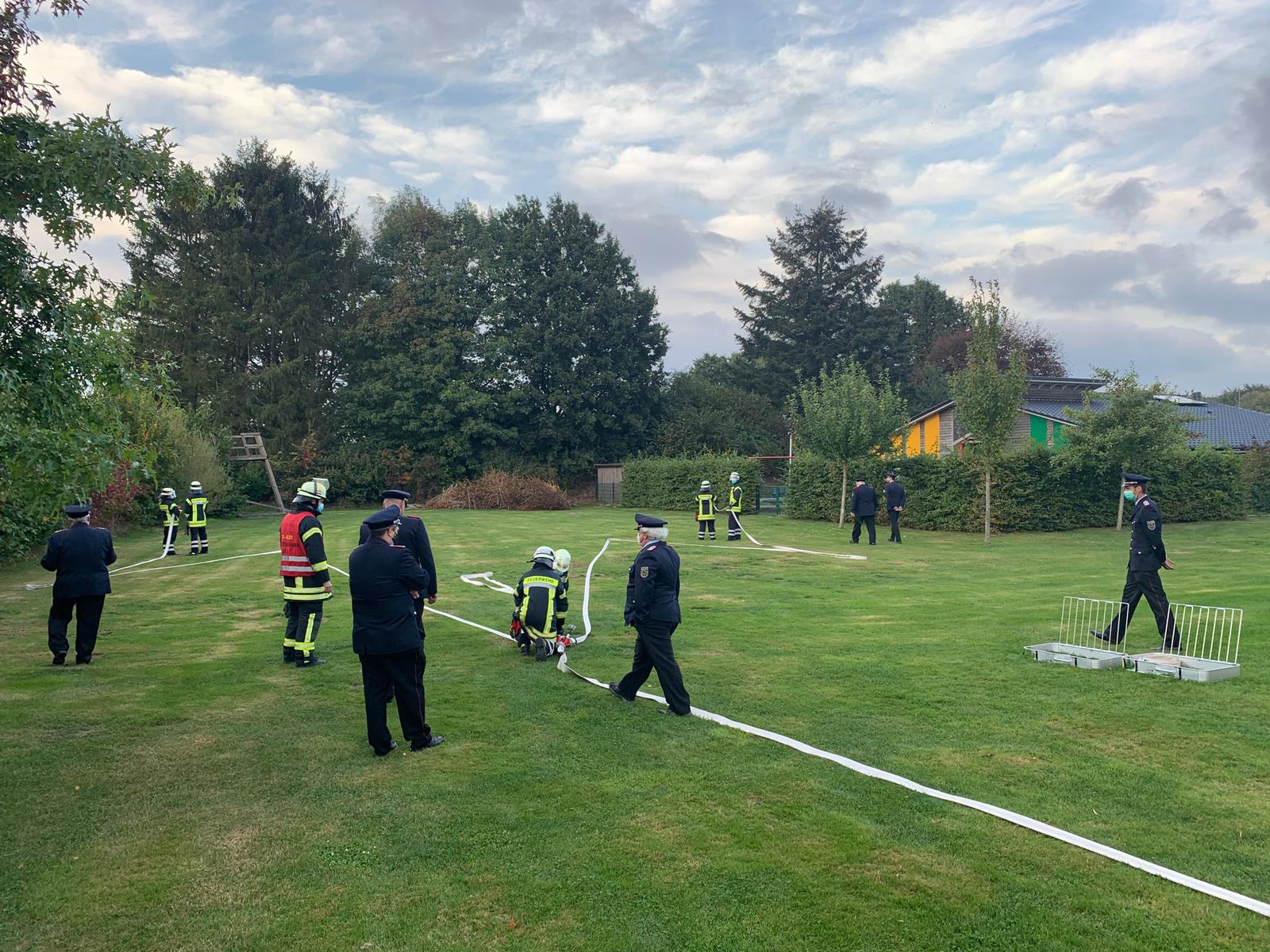 Nach vierwöchiger Unterweisung in Theorie und Praxis, wurde das Erlernte nun geprüft. Die Praxissimulation eines Löschangriffes, eine mündliche Befragung und ein schriftlicher Test schlossen die Ausbildung nun ab.