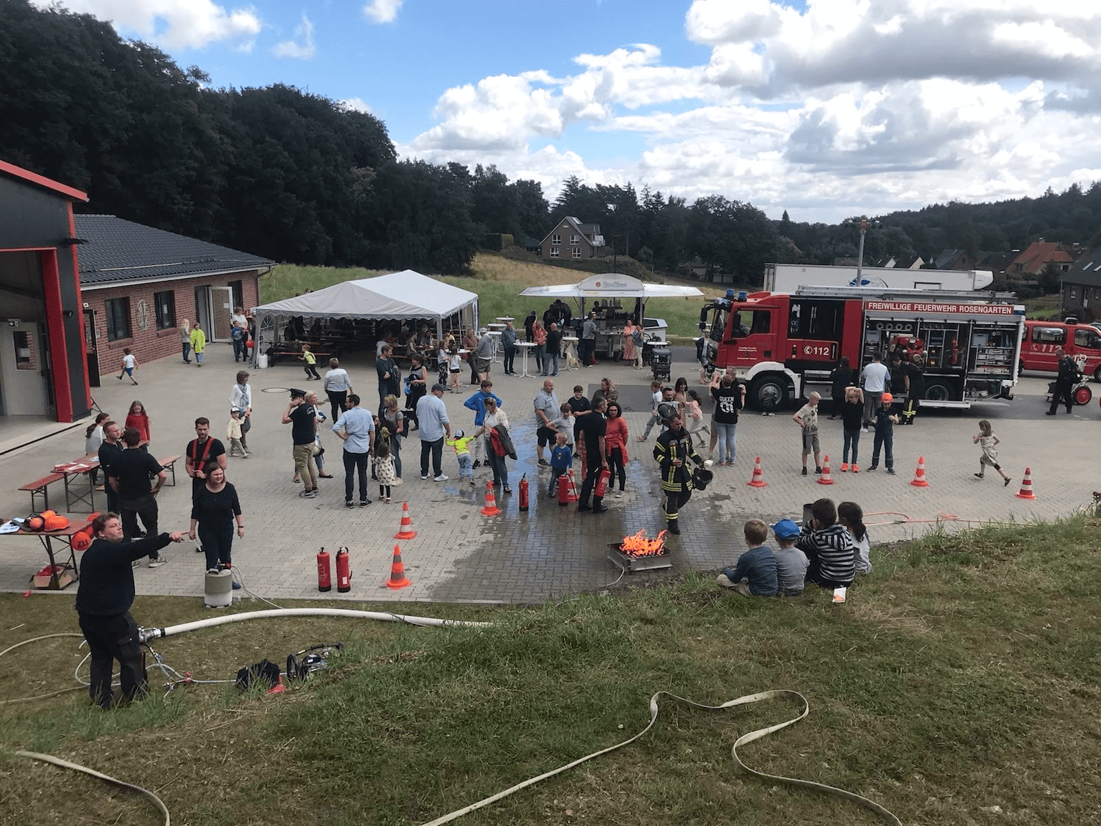 Von 10.00Uhr bis 14:00Uhr folgten rund 200 Interessierte der Einladung und waren begeistert. Es wurden Möglichkeiten des Feuerlöschens und Brandvorsorge geboten, aber auch eine Hüpfburg für Kinder. Vorführungen wie die Rettung einer Person aus einer simuliert brennenden Wohnung oder die verheerende Auswirkung, wenn man einen Fettbrand mit Wasser löscht. Auch die Kameraden aus Meckelfeld unterstützten mit der Drehleiter ebenso, wie aus Leversen-Sieversen um die Aufgaben im Einsatzleitwagen zu erklären. Der Ortsbrandmeister zeigte sich begeistert vom Zuspruch der Gäste und freut sich über zwei Interessierte neue Kameraden, sich für die Mitarbeit im aktiven Dienst entschieden haben und viele Mitbürger ihre zivile Unterstützung zugesagt haben