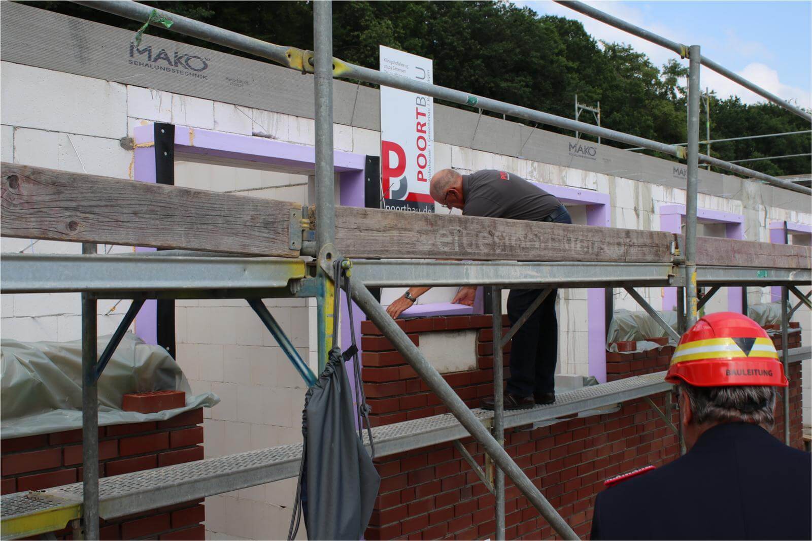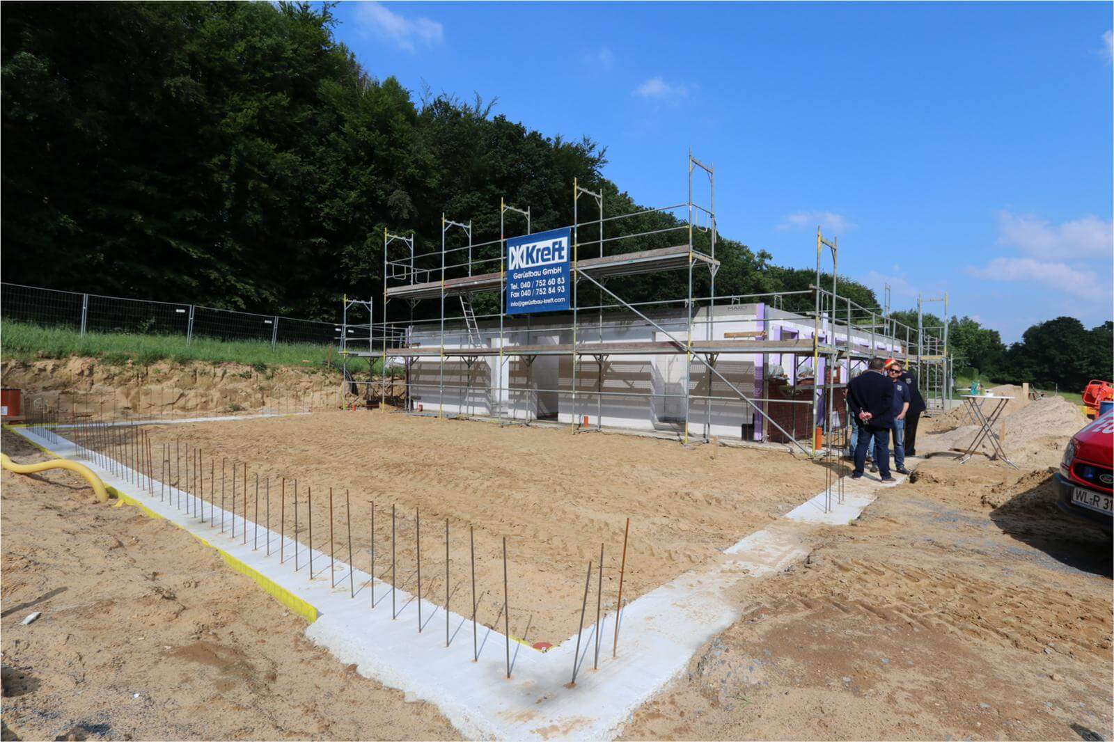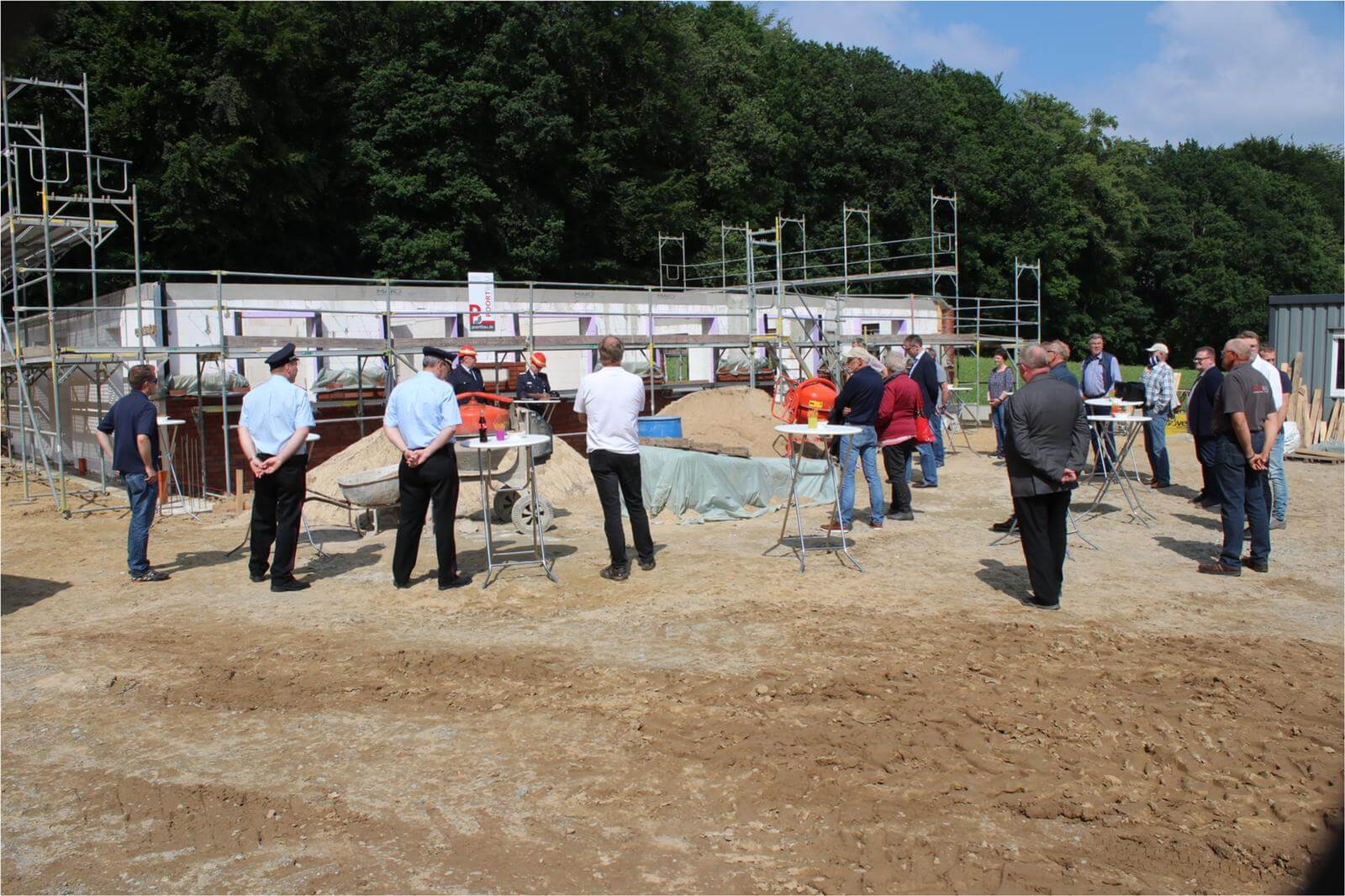 Am 16.06.2020 erreichten wir die nächste Etappe unseres Neubaus. Mit einigen Gästen aus Politik, ausführenden Firmen, Feuerwehr und Förderverein haben wir den symbolischen Grundstein gelegt. Für nachfolgende Generationen hielten wir diesen Moment fest und verstauten die obligatorischen Utensilien wie eine Tageszeitung, ein Ärmelwappen, ein Gruppenbild der Jugendfeuerwehr, Aktiven-und Altersabteilung und der Baupläne. In der Ansprache vom Wehrführer Joachim Kröhnke- v.d. Weihe bedankte er sich für die rege Unterstützung der Anwesenden, so dass eine pünktliche Fertigstellung zu erwarten ist. Damit auch Ortsbrandmeister und Vertreter Torsten Lange ihrer Rolle auch optisch gerecht wurden, übergaben die Feuerwehrleute, durch ihren Gruppenführer Sebastian Jacobsen, die passenden Kopfbedeckungen. Nun schauen wir gespannt auf die nächsten Gewerke und freuen uns auf das Richtfest.