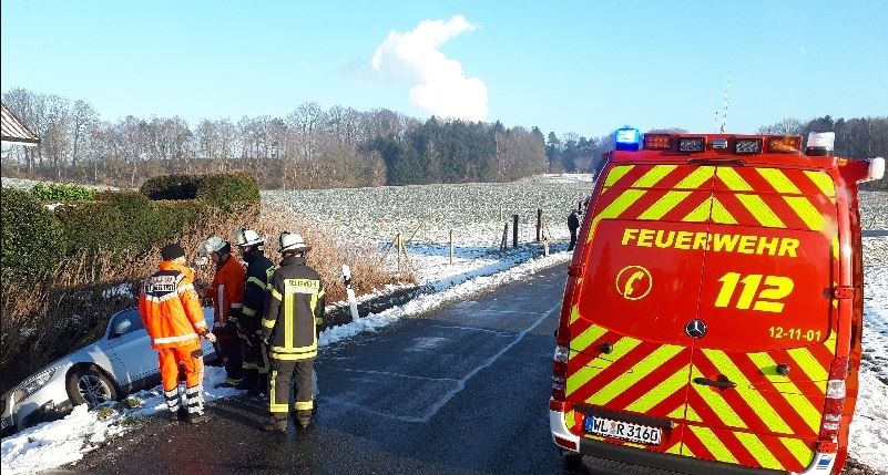 Zu einem glatteisbedingtem Einsatz kam es am heutigen Vormittag am Ortseingang Leversen. Ein PKW war durch tückisches Glatteis von der Fahrbahn abgekommen und im Graben gelandet. Glücklicherweise konnte die Fahrerin schnell befreit werden, sodass die Einsatzkräfte sich anschließend nur um die Sicherung der Einsätzstelle kümmern mussten. Die Fahrerin wurde dem Rettungsdienst übergeben und alle eingestzten Kräfte konnten recht schnell wieder in ihre Stützpunkte einrücken.