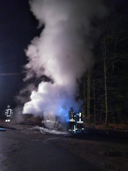 Das TLF Leversen zog zur Unterstützung der Feuerwehr Tötensen zur Einsatzstelle auf dem Parkplatz der K11 durch. Hier fanden die Einsatzkräfte einen in Vollbrand stehenden PKW vor. Die Brandbekämpfung wurde mittels Schnellangriffsrohr mit anschließendem Schaumangriff durchgeführt. Danach wurde die Einsatzstelle der Polizei übergeben, die wiederum die Brandursachenermittlungen aufgenommen hat. Laut Pressemitteilung (01.01.2021 – 11:27) der Polizei konnte nach Löschung des PKW durch die Feuerwehr, im Inneren Spuren von Feuerwerkskörpern festgestellt werden. Nach rund 1 Stunde konnten alle Kräfte wieder einrücken. Die Feuerwehr Tötensen war mit acht Kameraden im Einsatz.