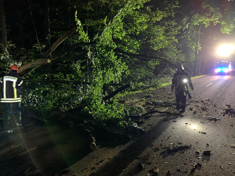 Im späten Abend alarmierte uns die Polizei, dass ein Baum auf die Straße Zum Sunder gefallen ist. Da die Straße momentan eingeschränkt nutzbar ist, durch den Kreiselbau, kam es zu keiner Gefährdung oder Verkehrsbehinderung. Der Baum wurde zerlegt und von der Straße entfernt. Nach Reinigung der Straße konnten wir nach 30 Minuten wieder einrücken.