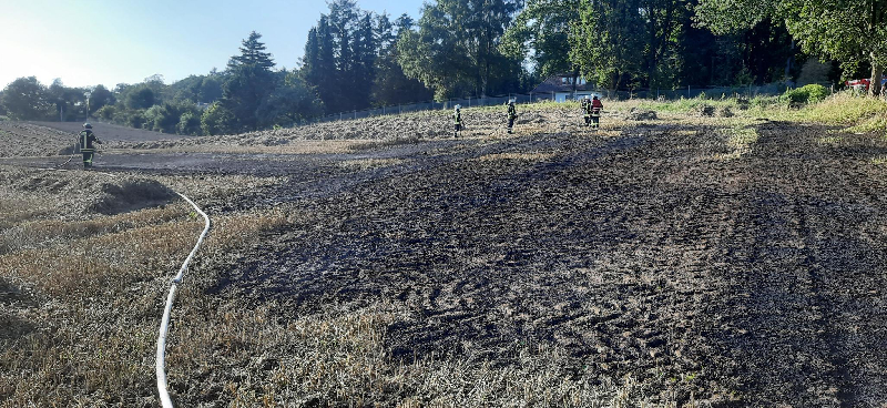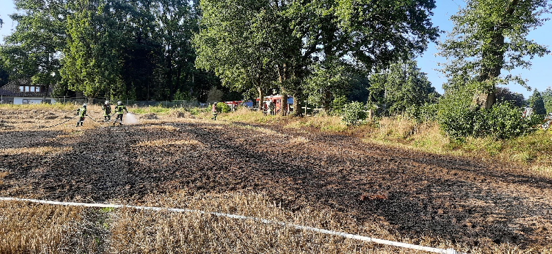 Heute Abend ist auf einer Landwirtschaftsfläche zwischen Metzendorfer Weg und Zum Sunder ein Teil in Brand geraten. auf ca. 300qm brannten die bereits gemähten Getreidestoppeln. Ebenso war das getrocknete Stroh schon eingefahren. Zusammen mit den Kameraden aus Leversen-Sieversen und Nenndorf konnten das Feuer schnell gelöscht werden.