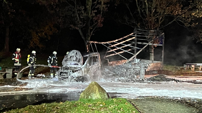 Am späten Samstag Abend alarmierte uns die Leitstelle zu einem LKW-Brand auf der BAB 261. Ein Kleintransporter stand auf dem Parkplatz zwischen der AS Tötensen und dem Buchholzer Dreieck. Es handelte sich um einen Transporter mit Planenaufbau, der aus ungeklärter Ursache im Vollbrand stand. Der Fahrer hatte sich selbstständig in Sicherheit bringen können.