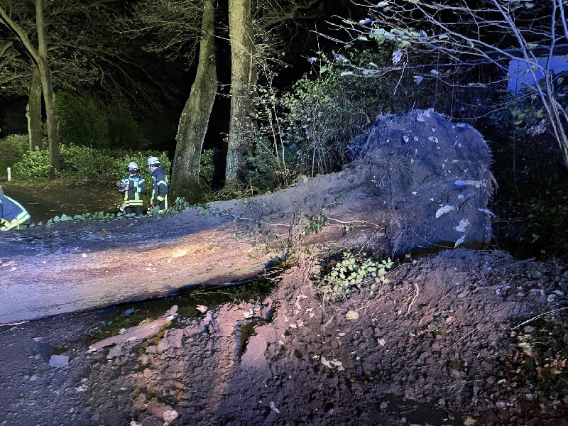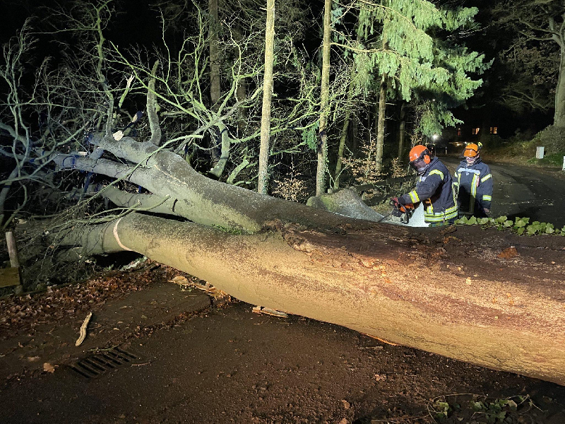 In den Abendstunden erreichte das Sturmtief "Daniel" auch Tötensen. Um 17:33Uhr alarmierte uns die Leitstelle mit dem Einsatzstichwort "Baum auf Straße". Beim Eintreffen war schnell zu sehen, dass es diesmal eine ausgewachsene Buche erwischt hat. Quer über den Metzendorfer Weg lag der entwurzelte Baum.