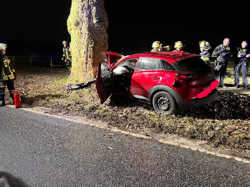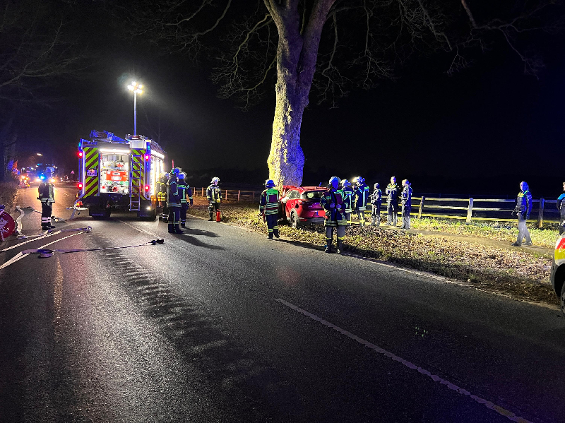 Zu einem Verkehrsunfall mit einer eingeklemmten Person wurden wir mit den o.g. Einheiten auf die Bremer Str. in Lürade (HH) alarmiert. Dort war der Fahrer eines PKW aus noch ungeklärter Ursache nach rechts von der Fahrbahn abgekommen und dann frontal mit einem Baum kollidiert. Nach Eintreffen der ersten Kräfte war der Fahrer bereits durch Polizeikräfte aus dem Fahrzeug befreit worden und wurde durch diese erstversorgt.