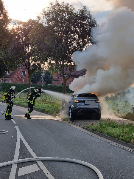 Heute Morgen wurden wir nach Westerhof, in die Westerhofer Straße gerufen. Ein hybrides Fahrzeug entzündete sich und ging in Flammen auf. Die beiden Insassen bemerkten während der Fahrt einen Brandgeruch, stellten das Fahrzeug neben der Straße ab und sofort schlugen Flammen aus dem Motorraum. Es gelang das Feuer vor dem Erreichen der Batteriezellen zu löschen. Obligatorisch wurde für dieses E-Auto zum Abtransport ein Muldencontainer gerufen, damit das Auto bei einer Selbstentzündung der Batteriezellen mit Wasserauffüllung in dem Container gekühlt werden kann.