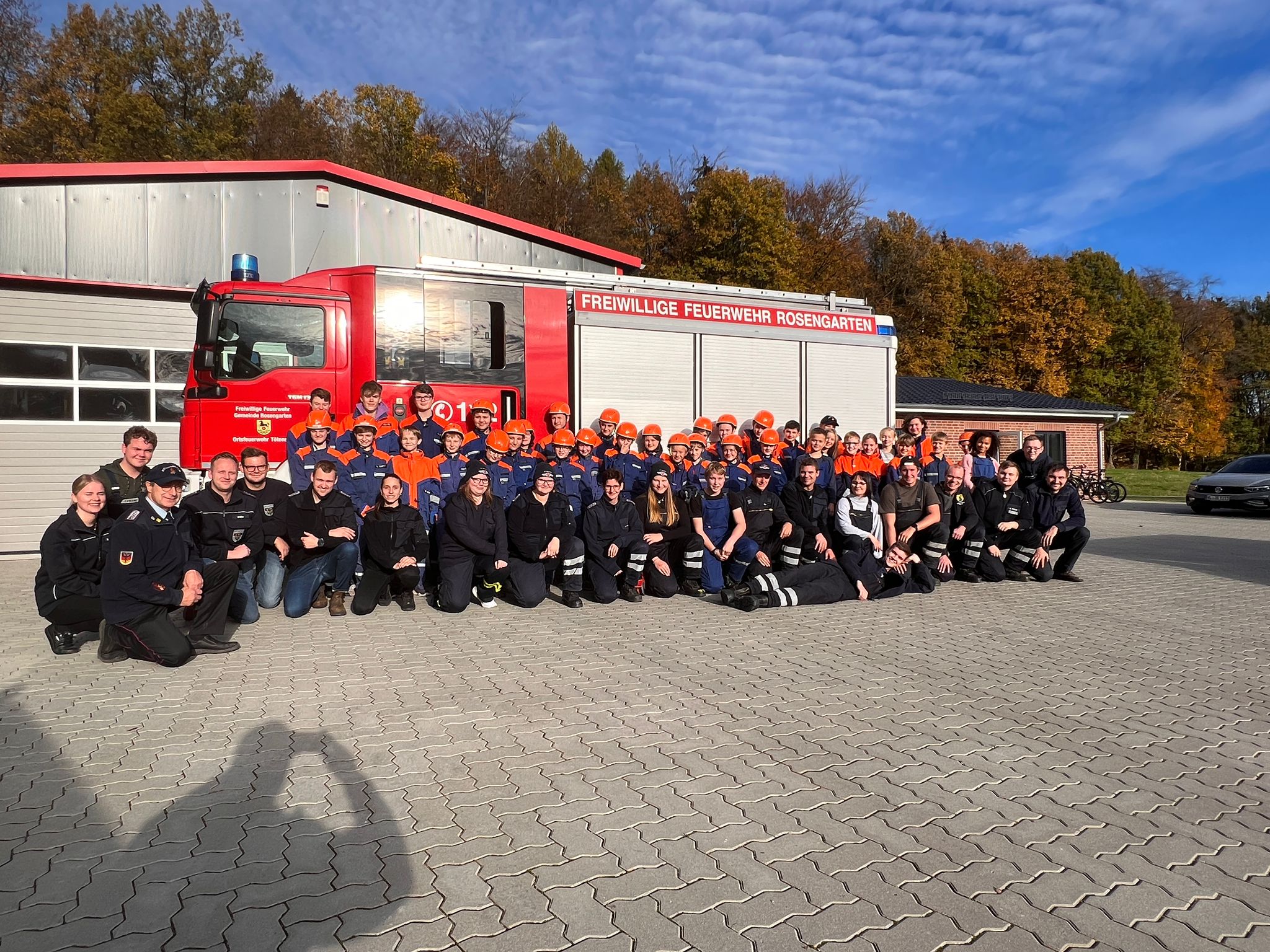 Am vergangenen Samstag endete die diesjährige Grundausbildung in der Gemeinde Rosengarten. Insgesamt starteten 24 Interessierte aus allen 9 Ortswehren. Der am 29.08.22 gestartete Lehrgang vermittelt den neuen Feuerwehrfrauen-/ und männern die Grundlagen der ehrenamtlichen Tätigkeit. So werden Inhalte theoretisch und praktisch in den Bereichen Brandbekämpfung, Fahrzeugkunde, Rechtsgrundlagen und Personenrettung gelehrt und geübt.