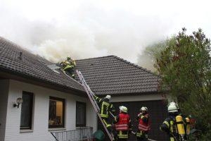 Beim Eintreffen der ersten Kräfte der beiden Feuerwehren war der Dachstuhl an einer Seite bereits durchgebrannt, das Feuer drohte sich auf den gesamten Dachbereich auszubreiten. Unverzüglich gingen die Einsatzkräfte unter der Leitung von Leversens Ortsbrandmeister Niklas Schubert von mehreren Seiten zur Brandbekämpfung vor. Aufgrund der enormen Rauchentwicklung wurden weitere Atemschutzgeräteträger benötigt, die Feuerwehren aus Nenndorf und Vahrendorf/Sottorf wurden zusätzlich alarmiert.