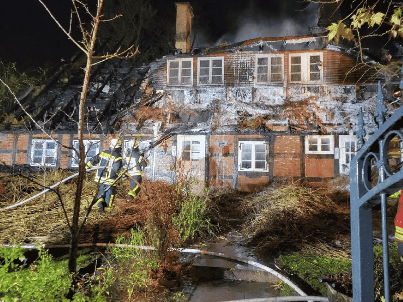 Am Freitagabend, dem 14.11.2025, wurden wir zur Unterstützung in die Gemeinde Seevetal alarmiert. In der Bahnhofstraße in Emmelndorf stand das Reetdach eines Fachwerkhauses beim Eintreffen der ersten Kräfte bereits in Vollbrand.