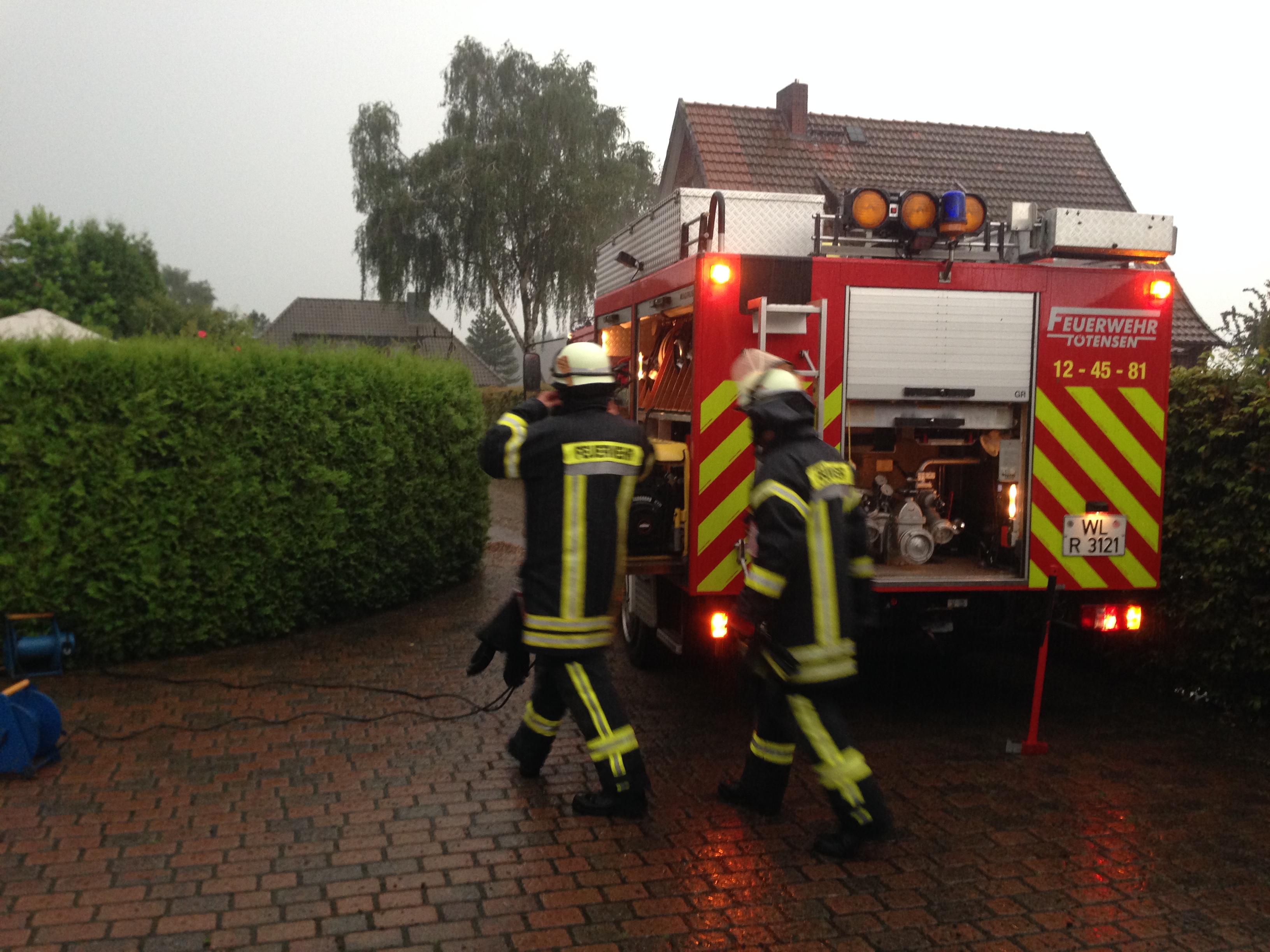 Zu einer technischen Hilfeleistung wurde am Dienstagabend um 19:53 Uhr die Feuerwehr aus Tötensen durch die Rettungsleitstelle des Landkreises Harburg in Winsen mit dem Stichwort „Wasser im Keller“ alarmiert. In der Straße "Harburger Straße" in Vahrendorf war durch den Starkregen ein Keller vollgelaufen. Da die Feuerwehr Vahrendorf bereits im Einsatz war, wurde die Feuerwehr aus Tötensen alarmiert. Der betroffene Keller wurde durch die Feuerwehr gelenzt und an den Besitzer übergeben. Die Feuerwehr Tötensen war unwetterbedingt für 2,5 Stunden mit 15 Kameraden im Einsatz. In dieser Zeit kam es im Ortgebiet Tötensen zu weiteren Einsatzstellen, diese wurden durch andere Feuerwehren der Gemeinde Rosengarten abgearbeitet.